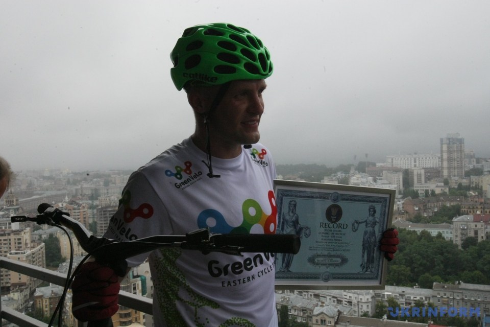 Поляк установил в Киеве рекорд восхождения на небоскреб велосипедом